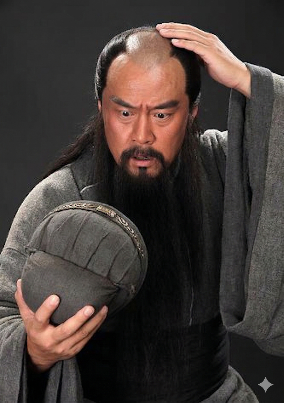 所以,关羽大概率有一个不愿示人的秘密:他那条标志性的绿头巾底下,很可能是一片"不毛之地"。