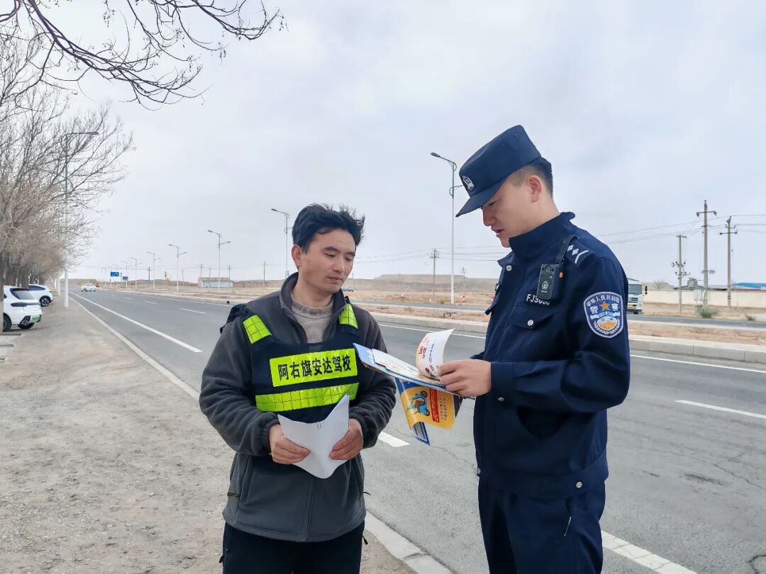 为从源头筑牢道路交通安全防线,4月15日,阿拉善右旗公安局交管大队深入辖区驾校、考场,对准驾驶人群体开展精准交通安全宣传活动,将安全理念融入驾考全流程,实现“领证先学法、上路先知险”。