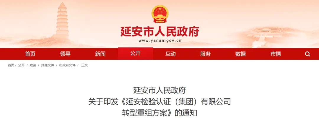 近日,延安市人民政府印发《延安检验认证(集团)有限公司转型重组方案》,明确延安检验认证(集团)有限公司为国有全资公司,比照正县级单位管理,由延安市国资委履行出资人职责,注册资本2亿元。方案提出,2026年底前将以市场化方式实施相关业务,并启动其他领域检验检测机构改革工作。