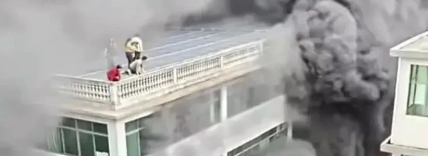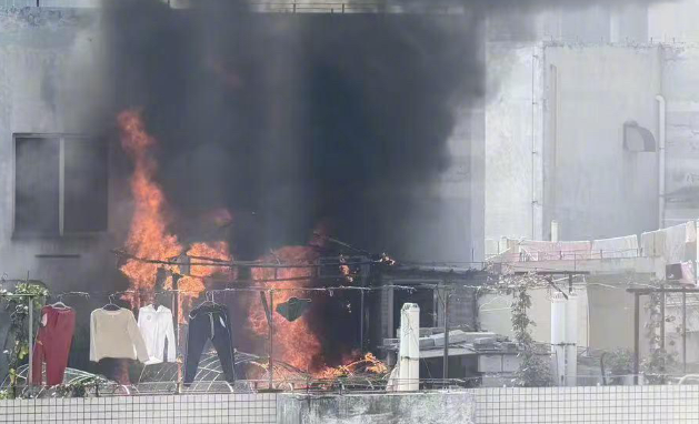 2026年1月28日中午,广东东莞市一栋高层住宅楼顶突发火情,滚滚浓烟迅速升腾,经调查,起火原因是业主在私搭的铁棚内堆放了大量杂物被引燃。