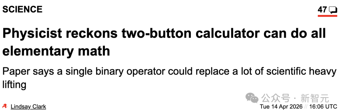 【新智元导读】别再为背公式发愁了!一个算子eml(x,y)就能搞定一切。指数函数?y=1即可。对数?三层嵌套。π?五层。这项发现不仅改变数学观,还启发我们:宇宙底层代码可能极致简短,一个算子统治全部。