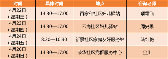 4.为了保证公益服务资源的合理分配,请预约的家长务必按照预约时间准时到达咨询点位,如有特殊情况请至少提前24小时联系工作人员调整,否则视为自动放弃,三个月内将无法再次预约。