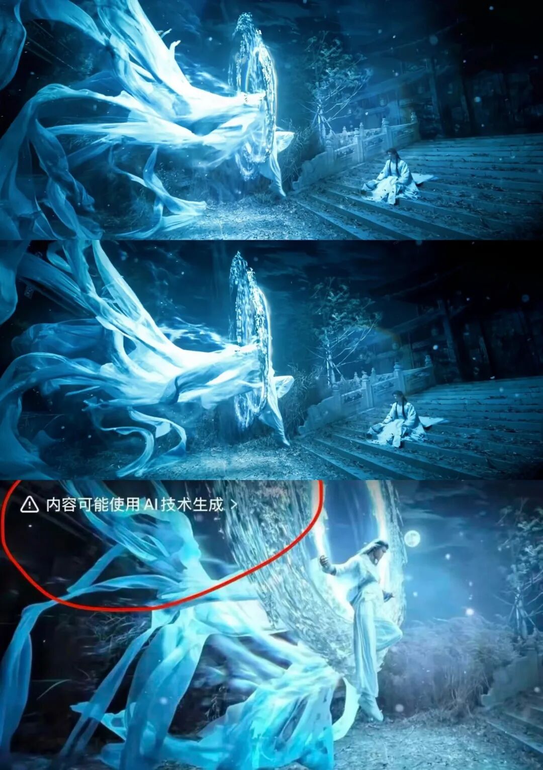 《月鳞绮纪》中田嘉瑞那段镜头是平台的误判,但以人类肉眼来看,它也很像AI产物。