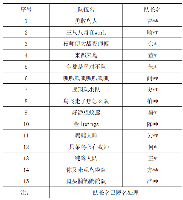 原标题:《2026年崇明西沙明珠湖观鸟挑战赛参赛队伍抽签结果出炉》