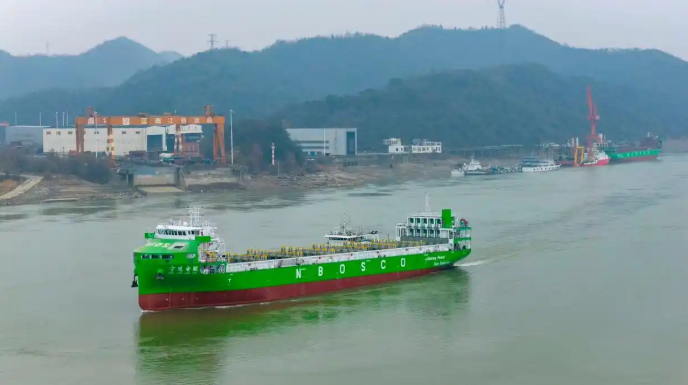 4月15日,由中船集团上海船舶研究设计院自主研发设计、中船集团第七〇四研究所提供新型纯电推进系统,江西江新造船有限公司承建的首艘740TEU纯电动智能集装箱海船交付命名暨首航仪式在浙江宁波举行。