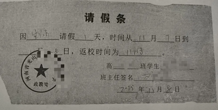涉事女生的请假条。大风新闻图