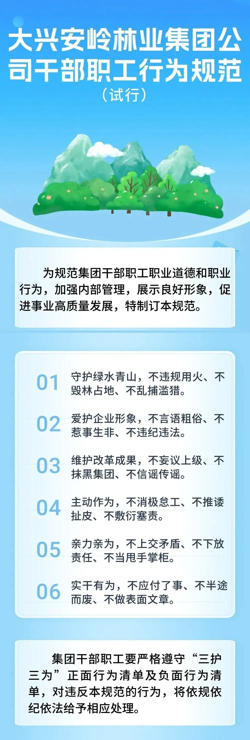 原标题:《大兴安岭林业集团公司干部职工行为规范(试行)》