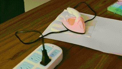 消防员随后将通电加热后的熨斗直接放置在玩具配套的电源线胶皮上,仅数十秒,电源线胶皮即出现软化破损。实验表明,若日常使用中发生此类情况,受损电源线继续通电工作,极易引发电气火灾。