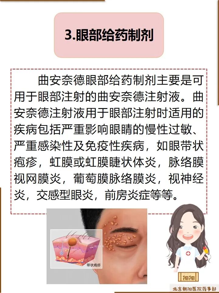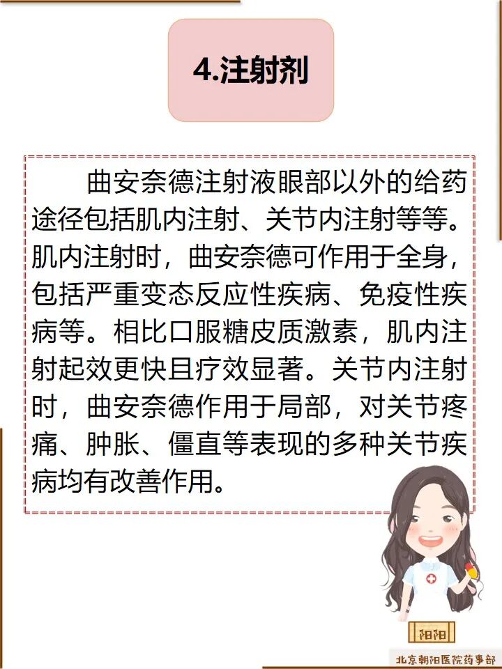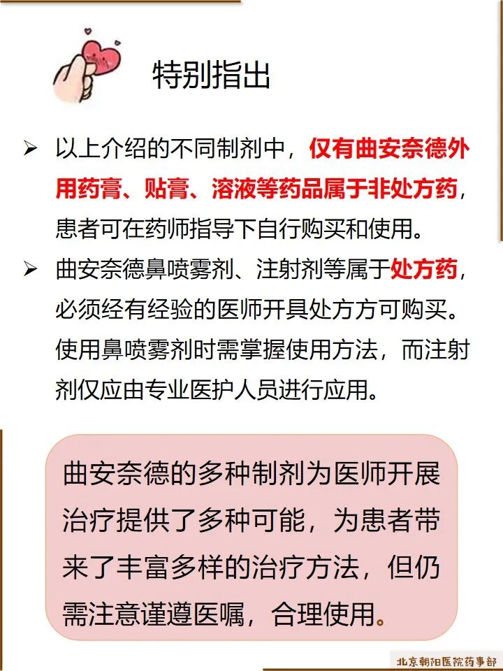 曲安奈德制剂涵盖类别广泛,包括外用药膏、贴膏或溶液,鼻喷雾剂,眼部给药制剂,注射剂等等,满足多种疾病需求。今天就来简单介绍一下曲安奈德不同制剂的应用。