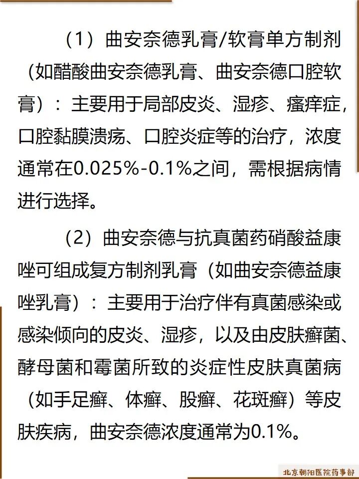 作为糖皮质激素大家族的一员,曲安奈德同样具有抗炎、抗过敏和免疫抑制的作用。从作用效果来说,曲安奈德属于中强效糖皮质激素,而在疗效持续时间上,曲安奈德属于长效糖皮质激素。