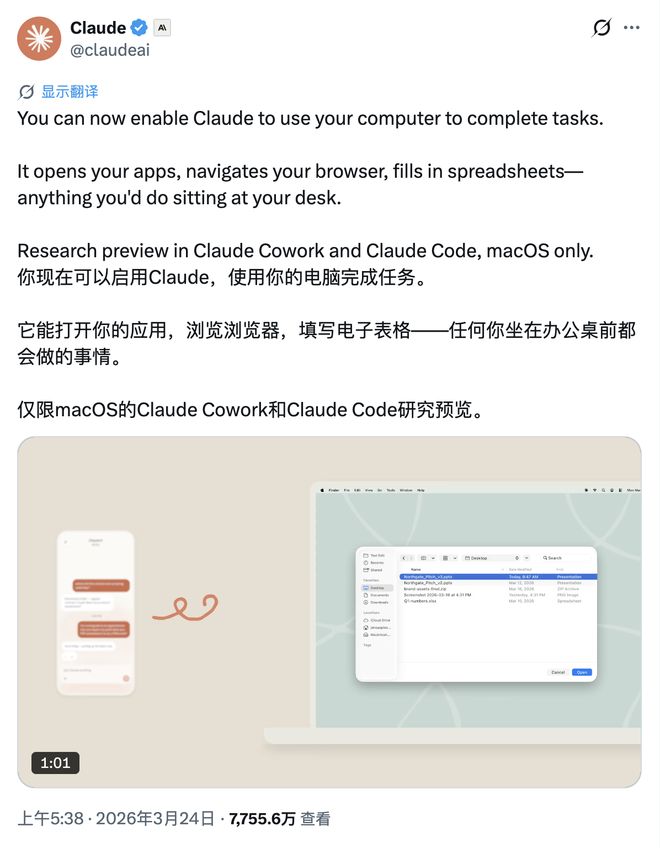 事实上,Claude 最早在 2024 年 10 月就尝试推出了基于 Claude 桌面端的 Computer Use 代理功能,让 AI 能够直接代理操作。不过后续也发现从模型、智能体框架到生态都没准备好,于是从代码出发打造了 Claude Code,又延伸出了 Claude Cowork,直接让 AI 通过 CLI 命令行、GUI 图形界面直接代理操作计算机。
