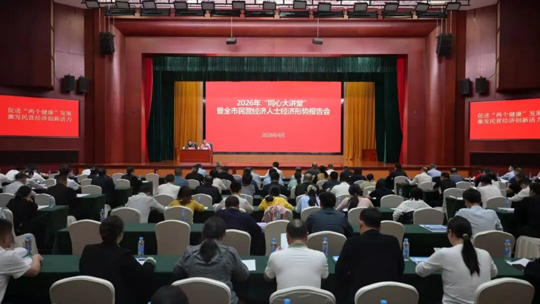 4月10日,吉安市举办2026年第二期“同心大讲堂”暨全市民营经济人士经济形势报告会。吉安市委常委、统战部部长刘志斌出席,市委统战部副部长、市工商联党组书记杨彩霞主持会议。