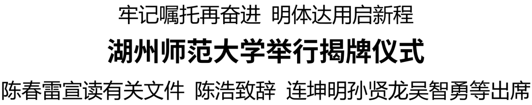 仪式最后,陈春雷、陈浩、连坤明、孙贤龙、许慧霞、盛况共同为湖州师范大学揭牌。