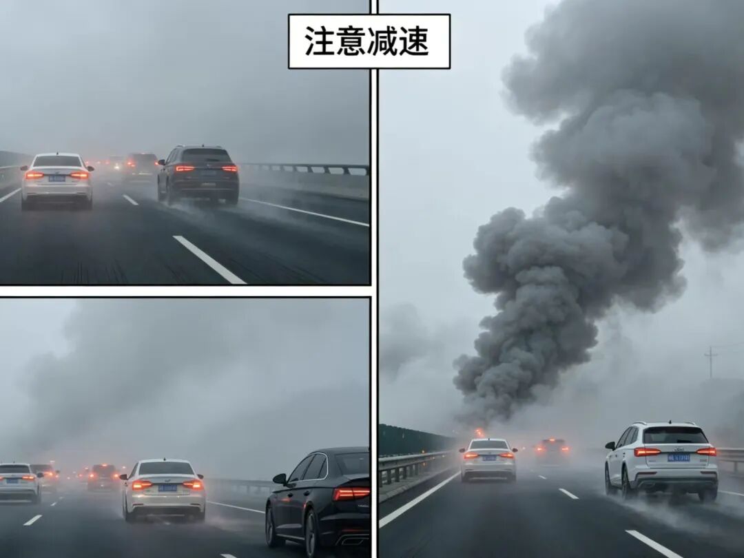 浓烟遮挡视线,导致司机看不清路况,极易引发交通事故。