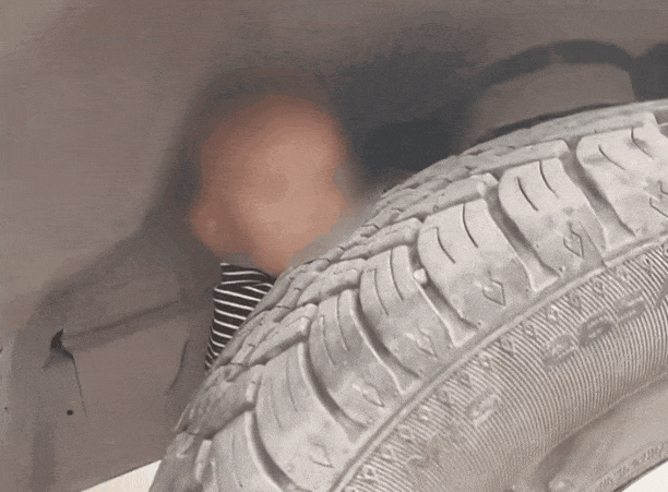幼童钻进车轮内侧。图源:央视新闻客户端