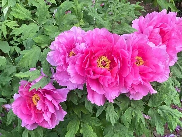 隋唐城遗址植物园:全园共有约420个品种牡丹开放,主要分布在九色园、百花园、科技园等处。其中:盛开的牡丹品种有剪绒、大红夺锦、素花魁、仙桃、紫羽傲阳等;初开的牡丹品种有:春柳、丹景红、帝冠、日向、乌金耀辉等。网红牡丹银丝贯顶,绿色系珍品牡丹绿幕隐玉等进入最佳观赏期。此外,园内绣球荚蒾、荷包牡丹、黄馨、猬实等竞相绽放。