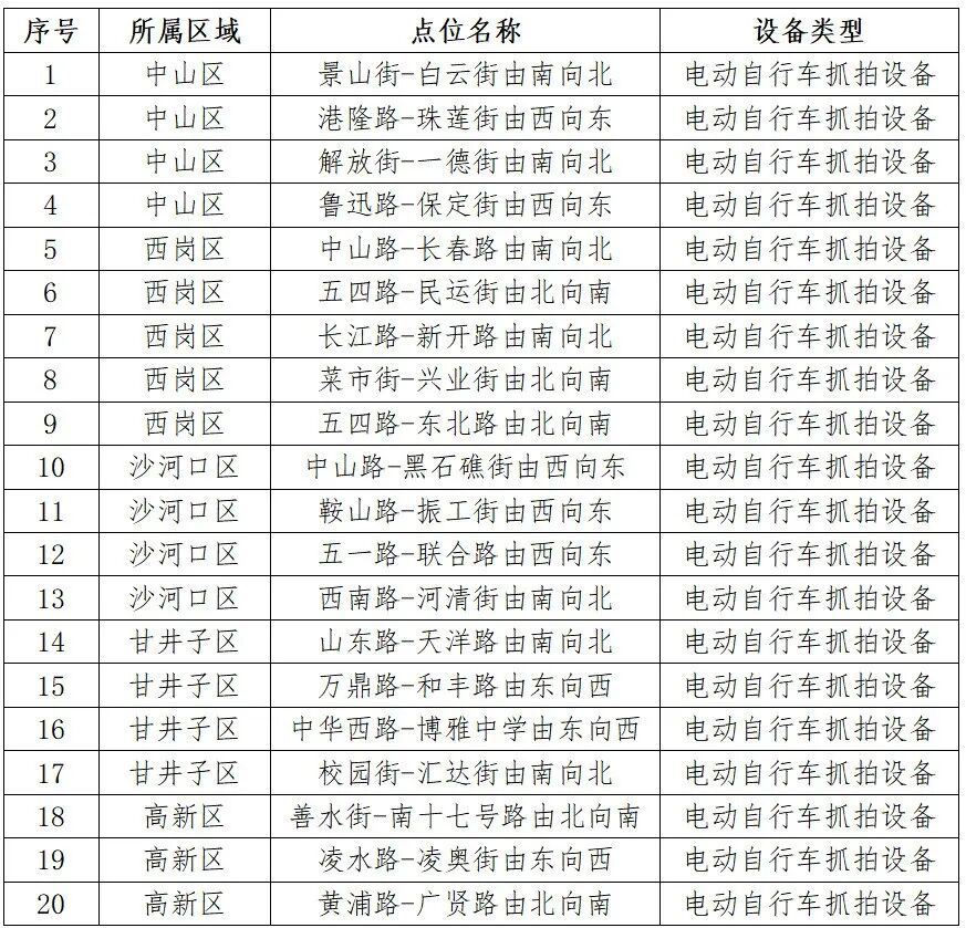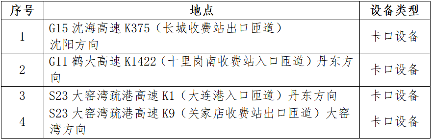 根据道路交通安全管理需要,按照《中华人民共和国行政处罚法》《中华人民共和国道路交通安全法》等法律法规有关要求,大连市公安局交通管理支队将于2026年4月29日0时起在以下道路启用交通技术监控设备,请广大交通参与者自觉遵守道路交通安全法律法规。