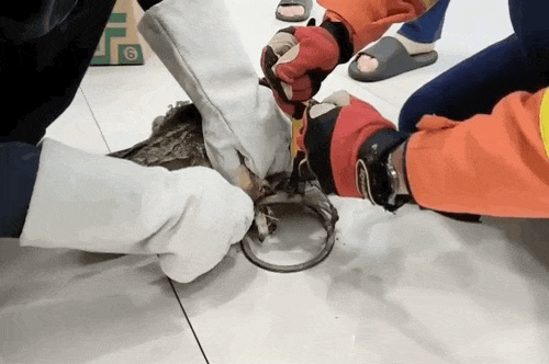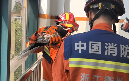 2024年10月,浙江杭州富阳区一猫头鹰脚部被野兽夹夹住无法脱困,被附近的村民发现遂送至富阳区消防救援大队寻求救助,消防员利用剪钳等工具成功为猫头鹰去除脚部的野兽夹,随后农业农村局的工作人员将猫头鹰送往附近的动物救助中心进行进一步的观察和治疗。猫头鹰属于国家二级保护动物。