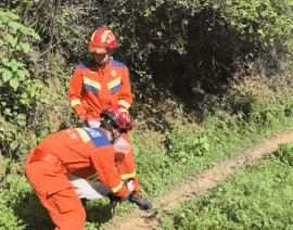 消防员轻声安抚、缓慢靠近