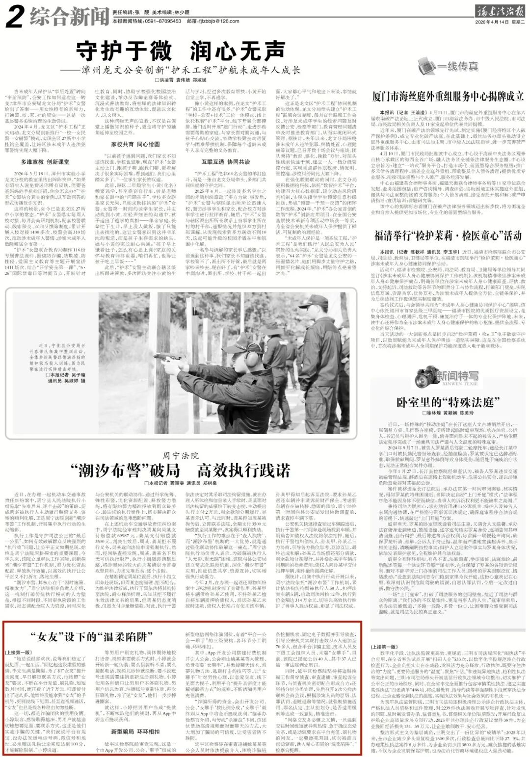 《福建法治报》头版报道延平区检察院办理的一起新型网络交友类诈骗案。