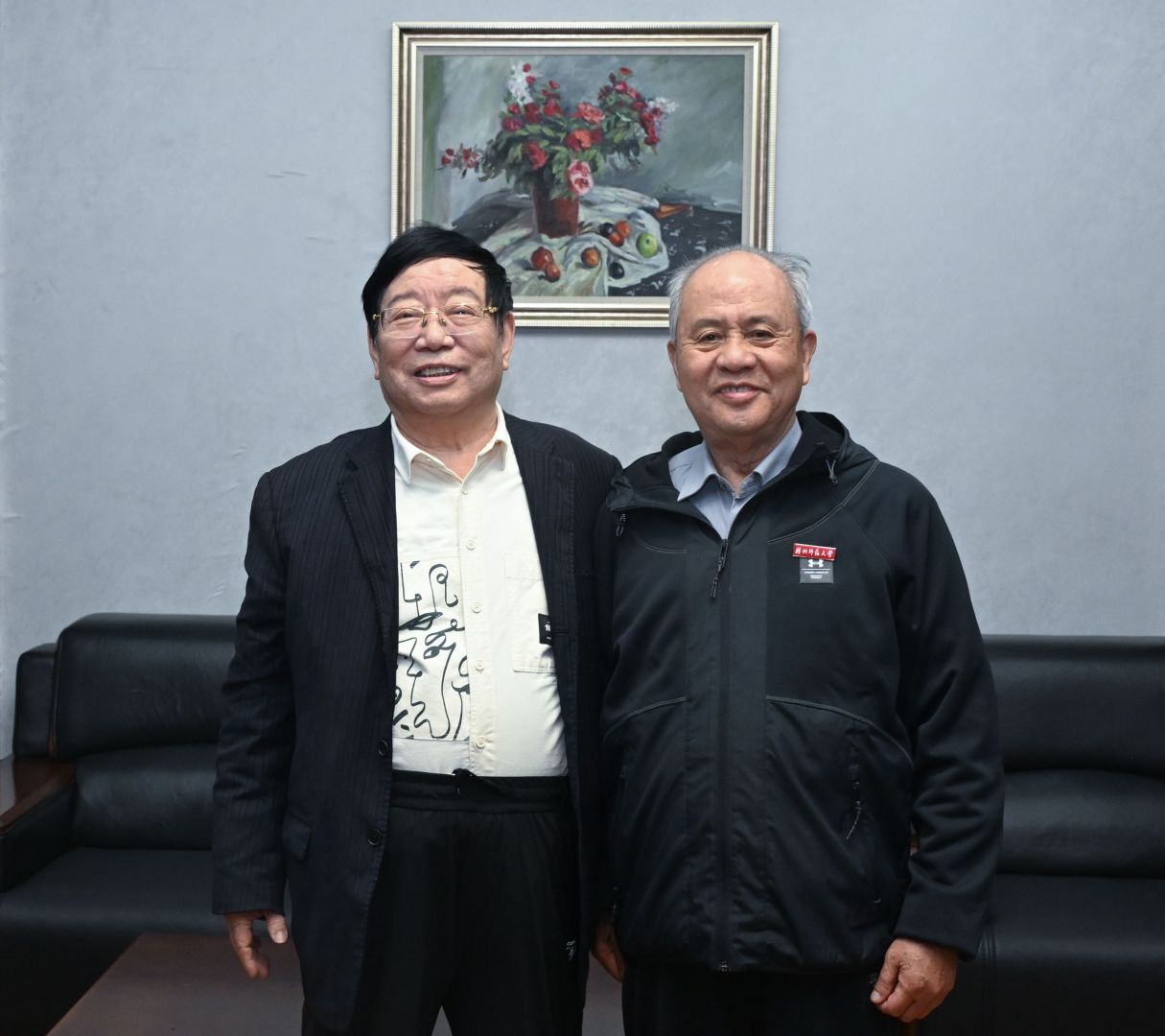 ▲ 蔡清江(右)和童连山在揭牌日的合影。 庄新民 摄