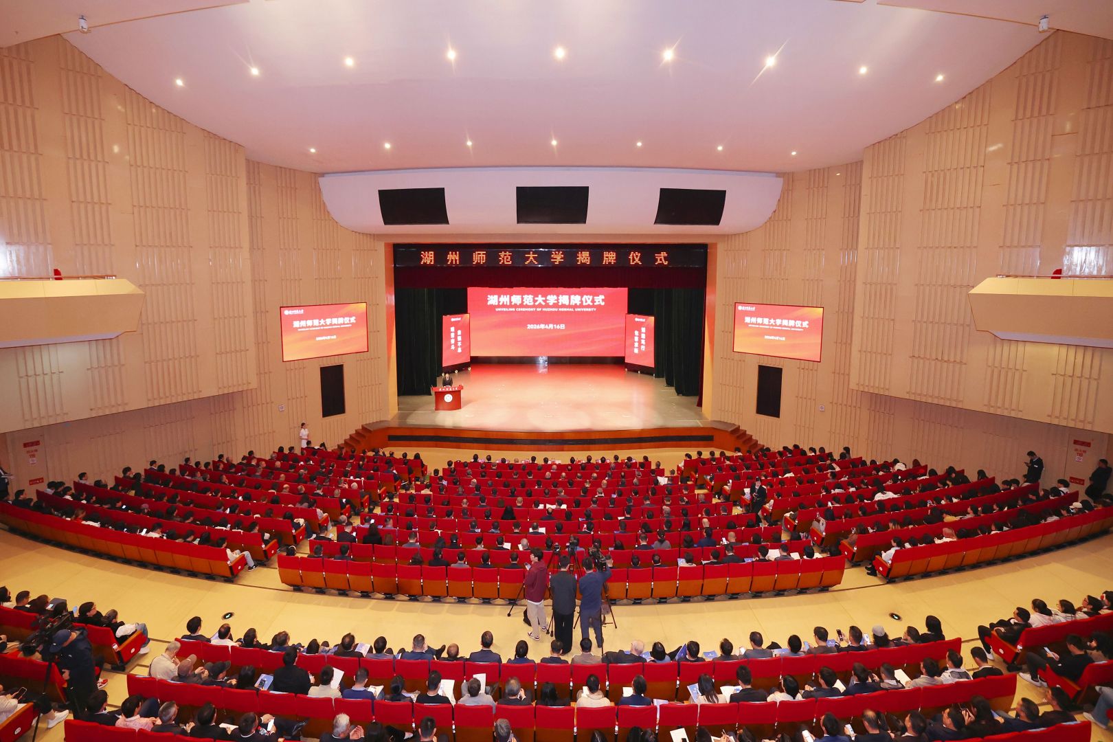 太湖之滨,春潮涌动。4月16日上午,湖州师范大学正式揭牌。红绸落下的那一刻,人群里有人鼓掌,有人举起手机,也有人的眼眶悄悄湿润——几代人的“大学梦”,在这一刻终于照进现实。