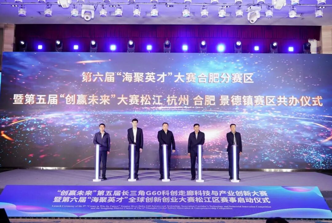松江区科创办、G60创新研究中心、杭州市临平区、合肥市科技局、景德镇市科技局相关负责人共同举行松江、杭州、合肥、景德镇赛区共办仪式。