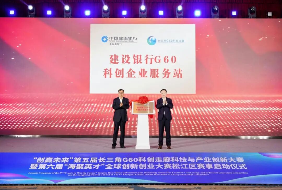 刘福升与黄勇共同为建设银行G60科创企业服务站揭牌。建设银行作为G60科创走廊战略合作银行,在服务科技金融等五篇大文章方面始终走在前列,将发挥建行全球网络布局和全球中心“一点接入、链动全球”等优势,为科创企业提供一站式综合金融服务,助力创新项目加速成长。