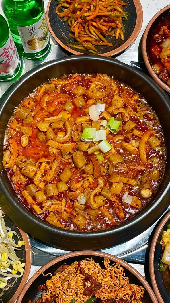 火辣辣的牛肥肠、烤鱿鱼、辣蒸明太鱼、烤海鲜、辣鸡爪,一口难忘,越吃越香。