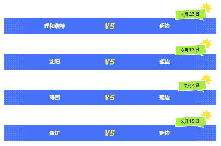 备受期待的2026年东北地区城市足球联赛(简称“东北超”)赛程近日火热出炉,延边赛区的主场赛事也将分别在以下日期激情打响: