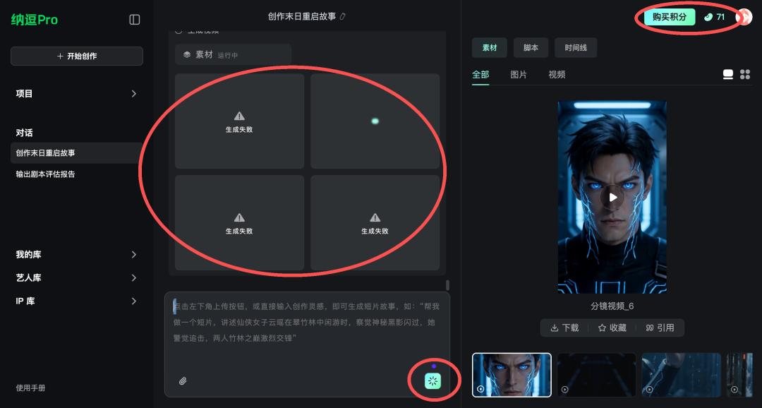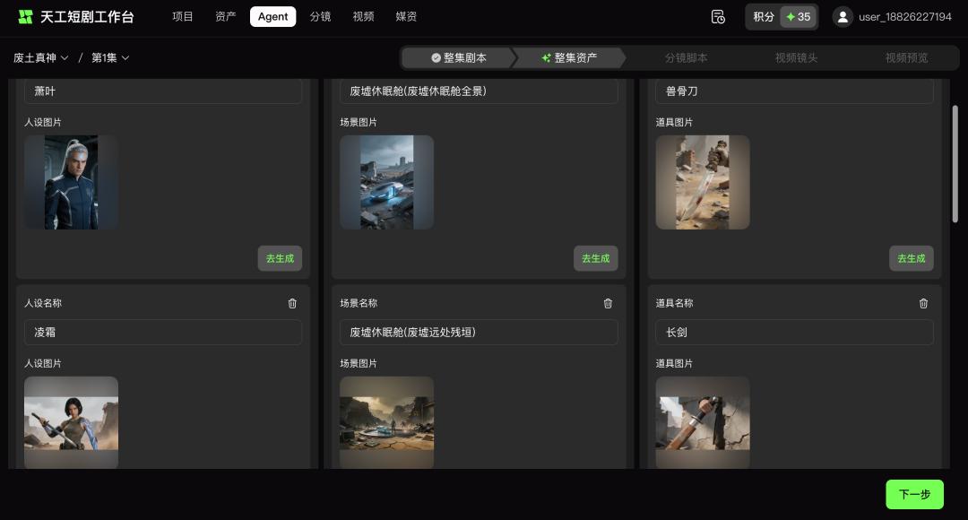但剩余积分已经不够我再次抽卡,只能算了。(用Agent做短剧大部分时候的感受都是,算了😓