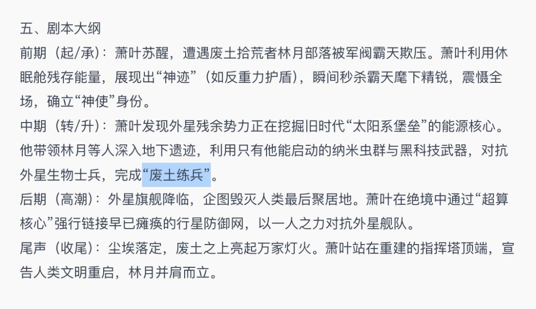 我们请资深短剧编剧九紫(五年短剧编剧经验、曾产出女频爆款、近一年内转型AI短剧编剧)评估了小云雀AI生成的《废土神座:重启文明》剧本,她的评价是:乍一看很唬人,实则完全没法用。