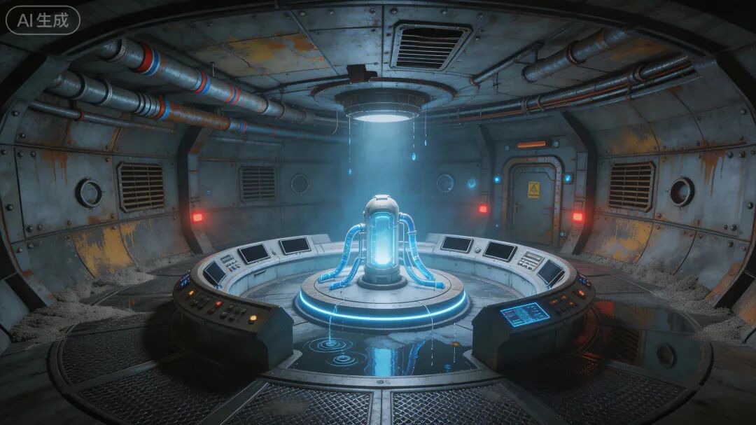 再次抽卡,提示词完全不改。这次女主朝向对了,但男主的休眠舱没了一半。