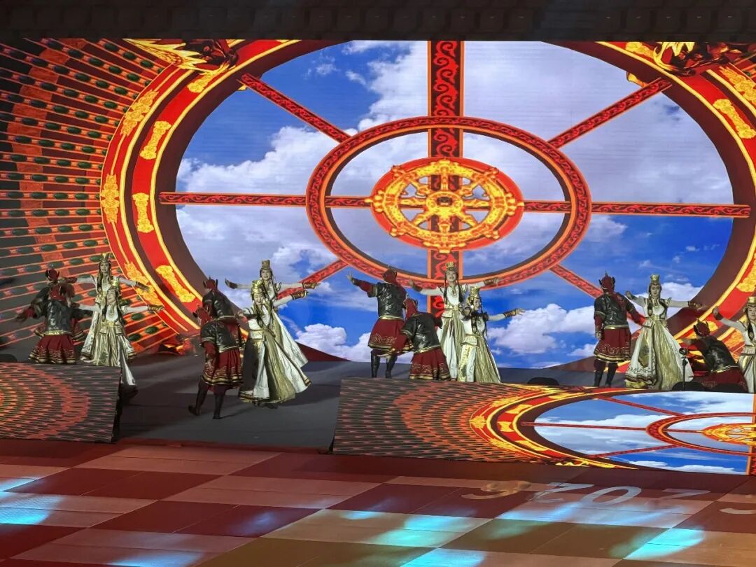 下午15时20分,开幕式在热烈的氛围中开始。暖场灯光秀拉开序幕后,歌舞表演《欢腾鄂尔多斯》点燃全场热情。