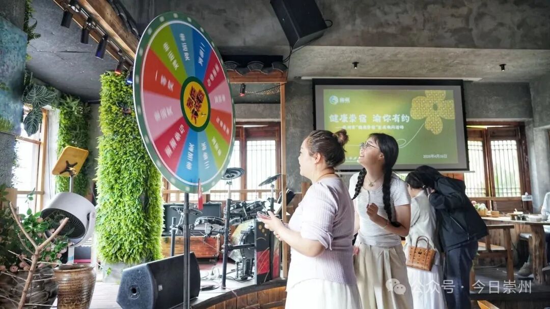 趣味互动环节将现场气氛推向高潮,通过抖音发布活动相关动态并参与“崇州文旅”话题共创,即可参与幸运转盘互动,以素喜青山为代表的“健康崇宿”住宿体验券和竹编小马“崇州礼物”备受青睐,往来市民、游客参与热情高涨。