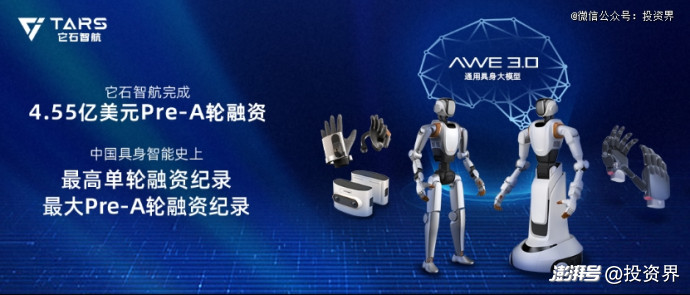 4月16日,它石智航宣布完成4.55亿美金Pre-A轮融资,一举创下中国具身智能有史以来最高单轮融资纪录。