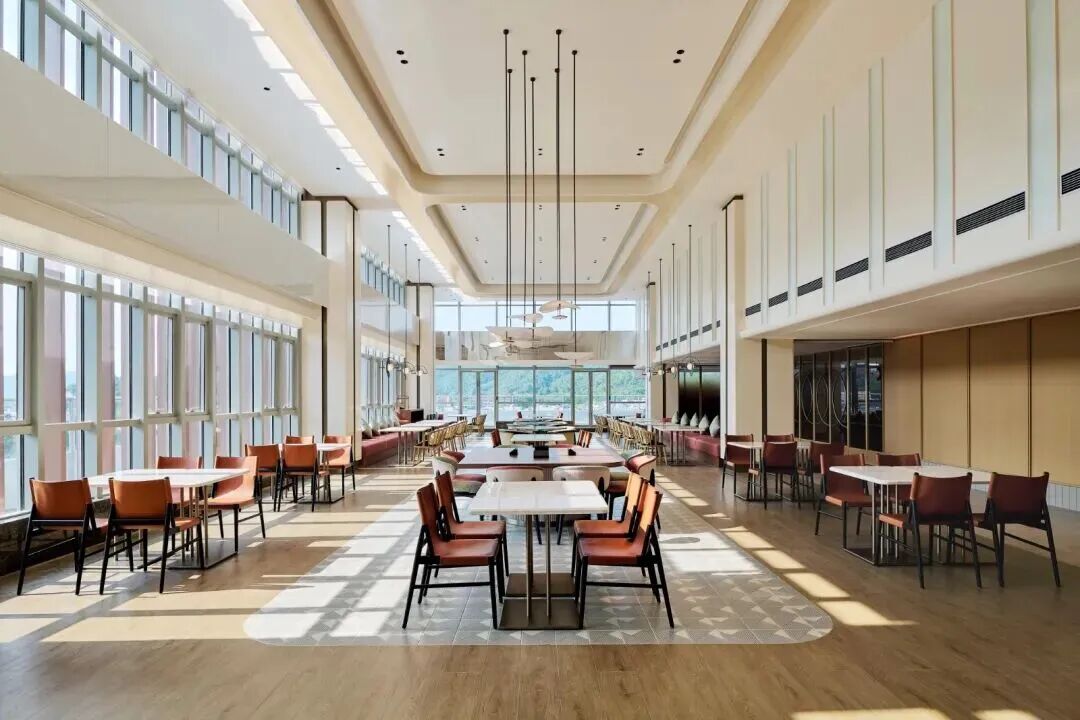 在餐饮方面,酒店中餐厅遵循粤菜时令本味,融入川味美学;西餐厅则以欧式技法演绎粤式及地中海风味。空中大堂酒廊与屋顶酒吧,可俯瞰九龙湖朝晖夕映的壮丽景致,是社交与休憩的悠然居所。