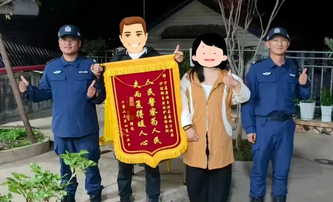 得知项链失而复得,游客十分感动,执意拒绝民警邮寄送回的提议,专程从丽江市区赶回泸沽湖,当面领回财物后,他紧紧握住民辅警双手致谢,并特意送上锦旗,对派出所尽心尽责、为民解忧的暖心服务给予高度认可。