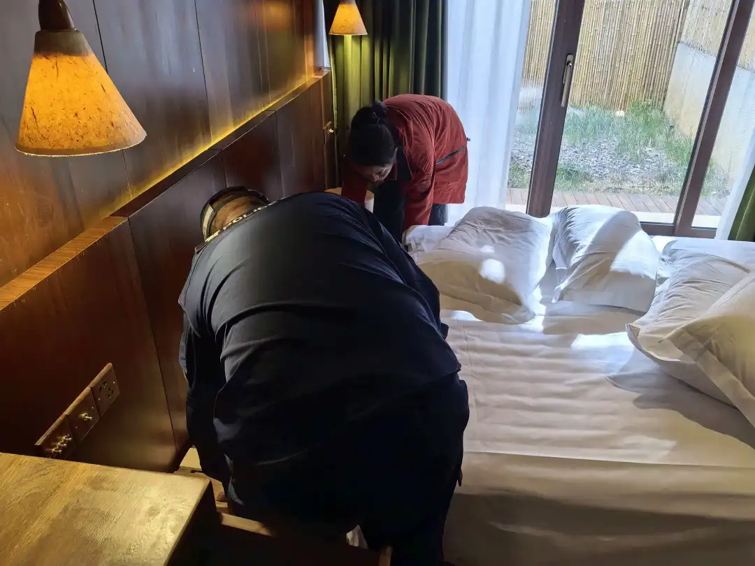 接警后,值班民辅警第一时间赶赴该酒店。到达时,酒店房间已统一打扫过,未发现游客的遗落物品,考虑到游客焦急万分的心情,民辅警始终不放弃,通过查看监控、逐区域排查,最终一缝隙死角处成功找到遗失的金项链。
