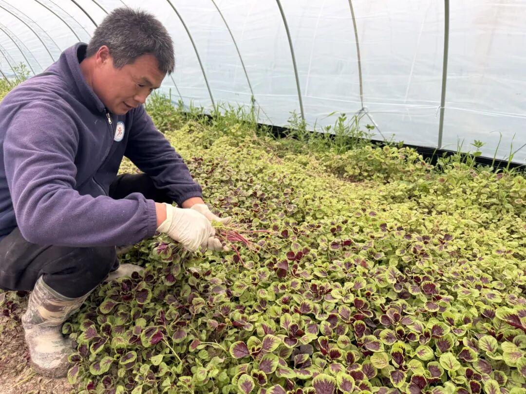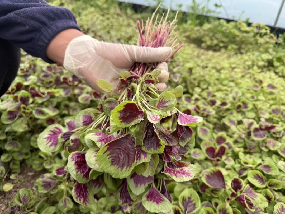 清晨六点,天色渐明,长堰村蔬菜大棚里开始热闹起来。走进大棚,一股清新的泥土气息扑面而来。放眼望去,紫红与翠绿交织的米苋铺满了田地,叶片肥嫩饱满,在晨光中泛着温润的光泽。随手掐下一把,嫩叶间渗出晶莹的汁水——这就是春天最鲜活的颜色。