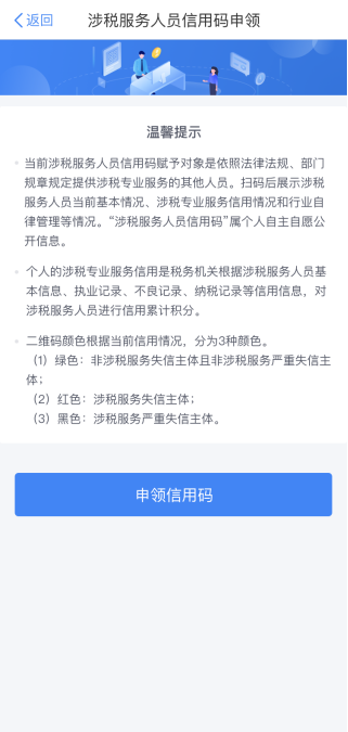为了方便纳税人查询涉税服务人员的基本信息和信用情况,税务部门推出了“涉税专业服务信用码”,我来告诉你如何申领涉税服务人员信用码吧!