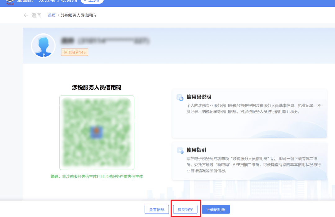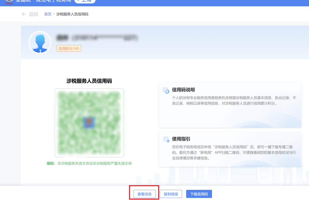 2.进入功能后,显示涉税服务人员的信用码信息。