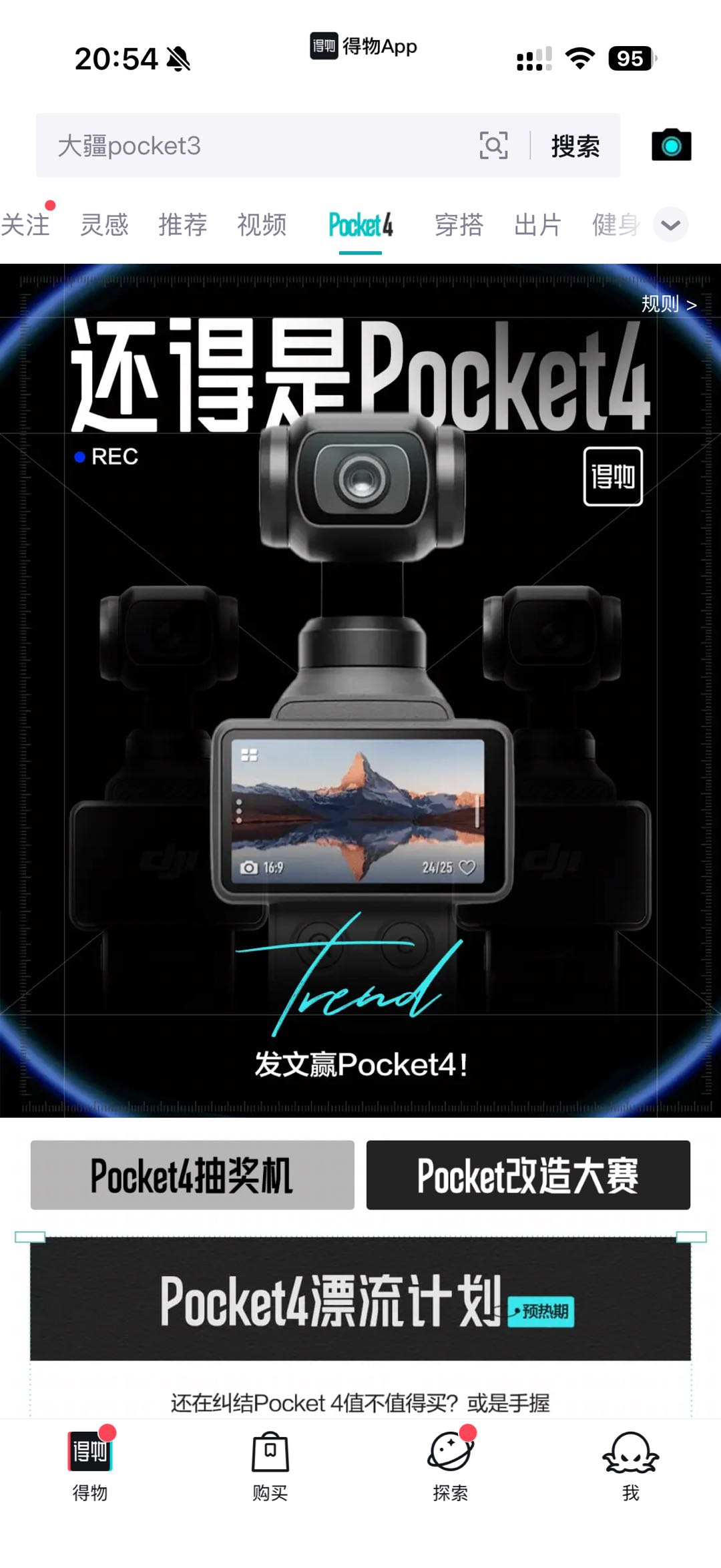 大疆官方正式入驻得物App,Pocket 4新品得物现货首发