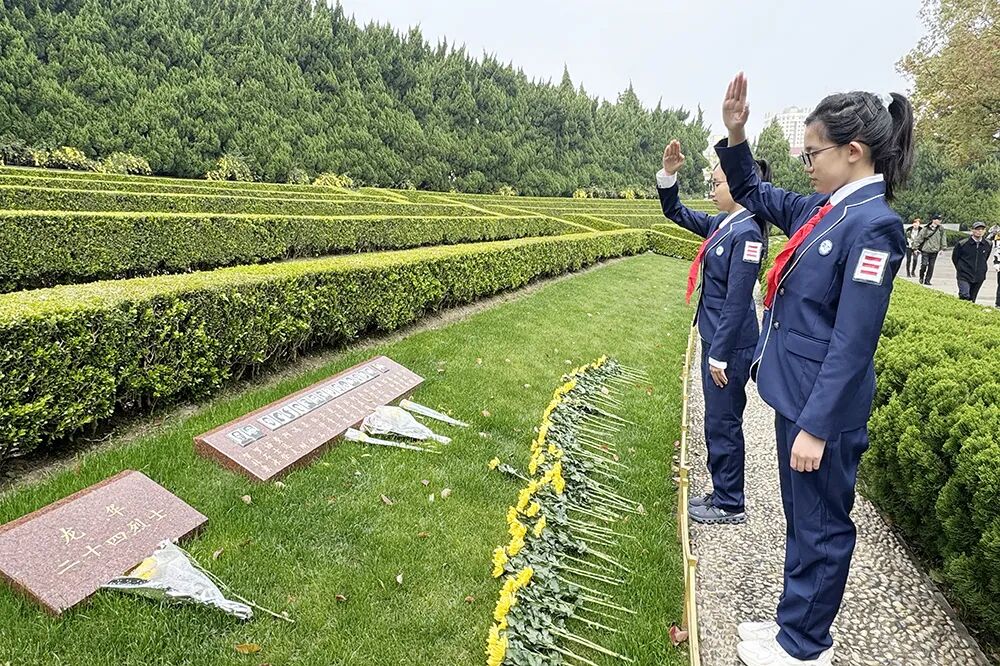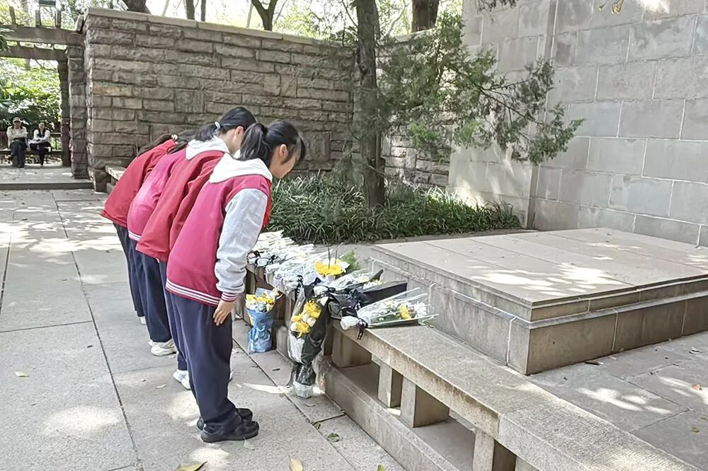上海市鲁迅初级中学“朝花”红领巾志愿总队队员代表分别前往鲁迅墓、龙华烈士陵园左联五烈士所在的二十四烈士墓开展庄重的瞻仰活动。此次祭扫以缅怀先贤、致敬英烈为主题。队员们在肃穆氛围中敬献哀思、鞠躬致敬,在追思中坚定理想信念,把英烈精神转化为勤学向善、勇担使命的行动力量,让红色基因代代相传。