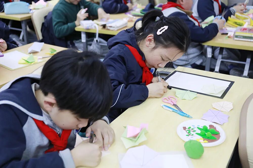 上海市虹口区第四中心小学依托清明节气,开展“指尖雨伞 春日美好”主题活动,将传统文化浸润与红色思政教育相融,打造温润走心的思政实践课堂。在指尖创作中缅怀英烈、传承家国情怀。一把小小的折纸伞,藏着春日的诗意,更承载着厚重的敬意,恰似革命英烈为我们撑起的守护之伞。正是先烈们披荆斩棘、遮风挡雨,才换来了如今的山河安宁、岁月静好。这场实践活动,也让家国情怀在孩子们心底悄然扎根。