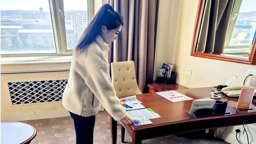 工作人员先后前往多家星级酒店、商务宾馆,在客房书桌、前台等醒目位置,规范摆放《加格达奇林业局旅游攻略》及加区文旅宣传折页。宣传册涵盖加林局森林生态资源、特色文旅项目、精品旅游线路、森林康养产品和本地美食住宿等实用信息,可为游客规划行程提供全面参考。投放期间,工作人员逐一检查客房宣传资料摆放情况,确保宣传品到位、内容完整。