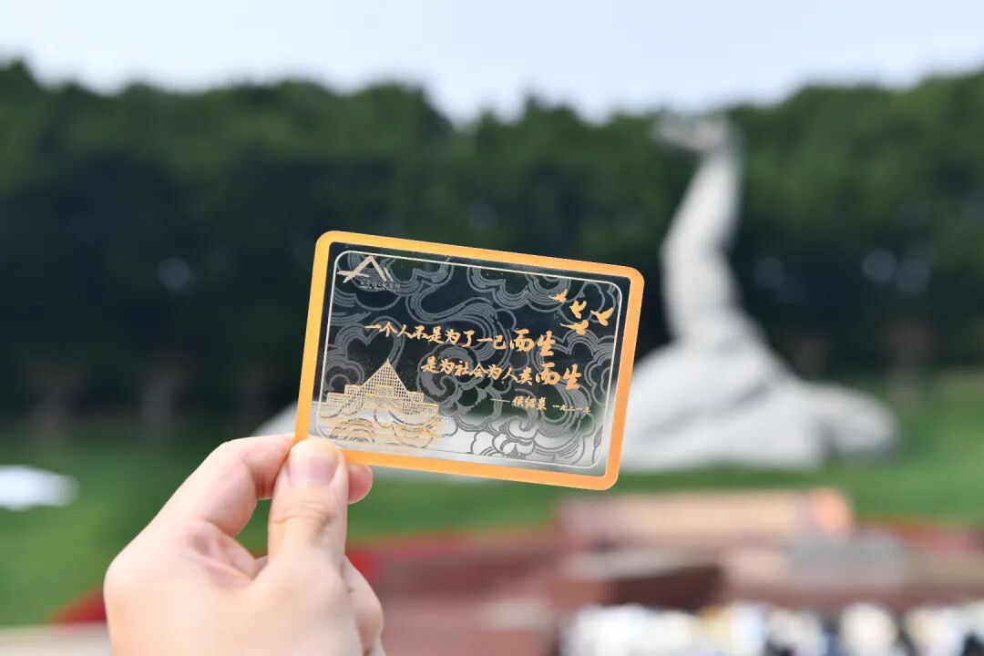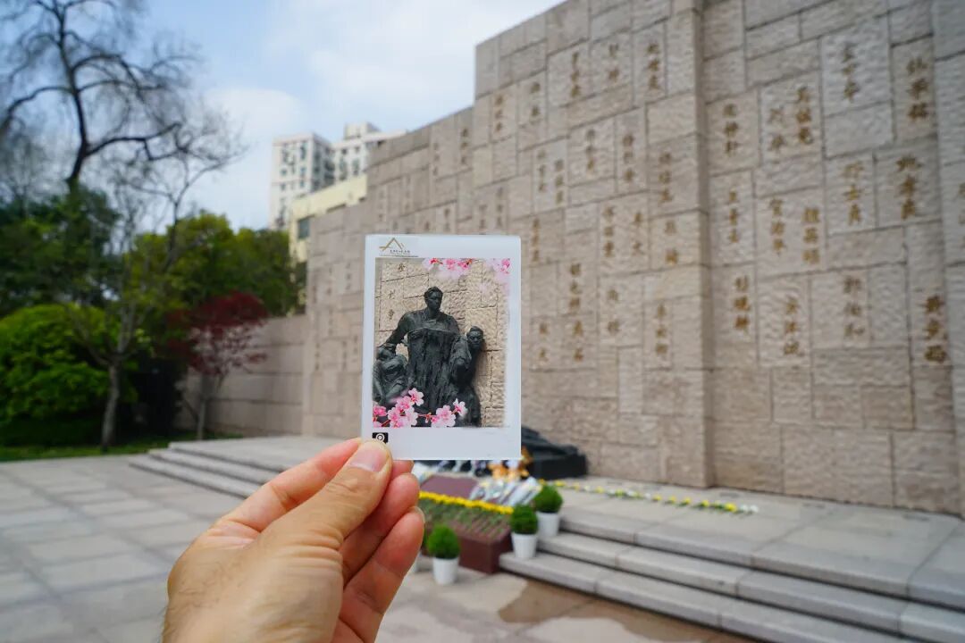 值得一提的是,本次活动的纸鸢及透卡文创,大多由上海高校的学生志愿者设计制作。来自上海东海职业技术学院影视动画专业的志愿者刘一诺说:“这是我们非遗老师和工作团队一起准备的,希望让更多年轻人了解并传承这份节日记忆与家国情怀。”完成纸鸢后,参与者可领取一枚纪念透卡——以桃花林、旗帜轮廓为灵感,方寸之间铭刻初心。手持透卡对着陵园实景拍照,桃花、雕塑与卡片图案虚实叠加,为活动增添了创意趣味。