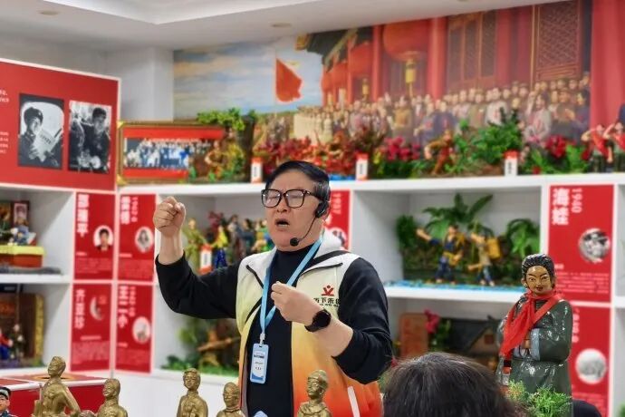 活动伊始,历下区红色泥塑大师李其仁老师详细介绍了本次活动的背景以及红色教育基地概况。他结合退役老兵真实案例,以泥塑为载体,系统讲解多个红色故事,用看得见、摸得着的艺术形式,让党员、家长及幼儿共同感知红色力量。