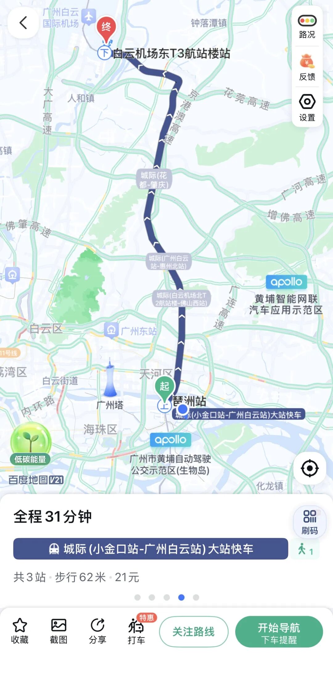 在广州市交通运输局指导下,广惠、广肇、广清、广州东环、琶莲和穗深城际铁路已正式接入高德、百度两大地图平台。市民旅客可通过高德、百度地图查询到包含地铁、公交、城际铁路在内的综合换乘方案,查询操作更便捷、出行信息更直观。同时,优化了各平台白云机场东站、白云机场南站和白云机场北站站名显示,新增T3、T1、T2航站楼标注,广州地铁APP及广东城际官方微信公众号的“城际出行助手”新增“站台显示”功能,进一步便捷旅客出行。