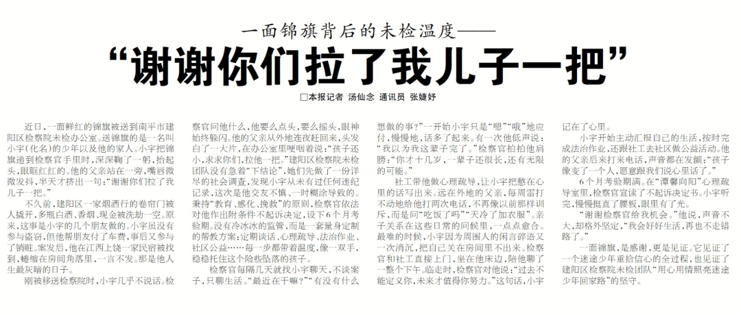 《福建法治报》丨一面锦旗背后的未检温度:“谢谢你们拉了我儿子一把”